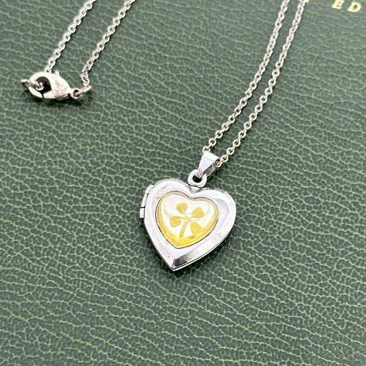 Vintage 925 Heart Locket Necklace with Four Leaf Clover Inside