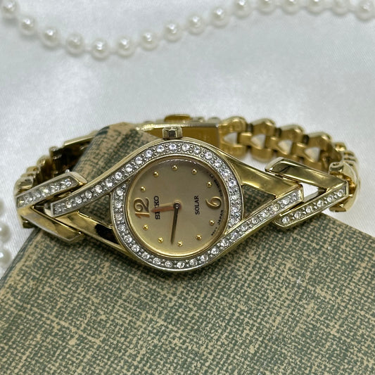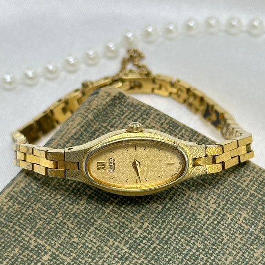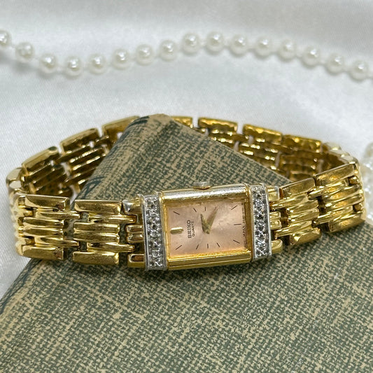 Gold 1979 Timex with Strawberry Charm Bracelet