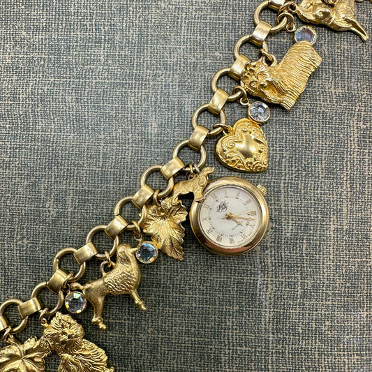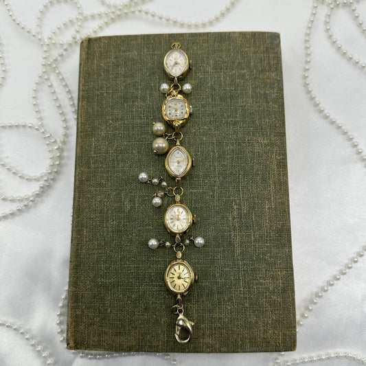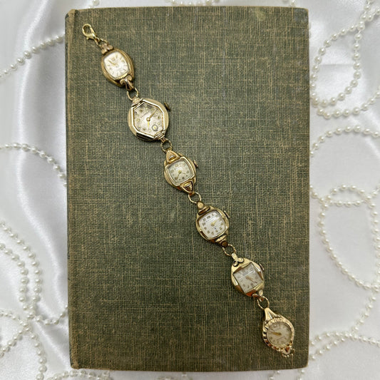 Mushroom Chain Bracelet with Vintage Gold Watch
