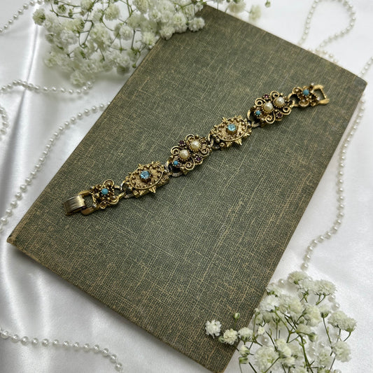 Blue Stone Chain Bracelet with Vintage Copper 14k GF Watch