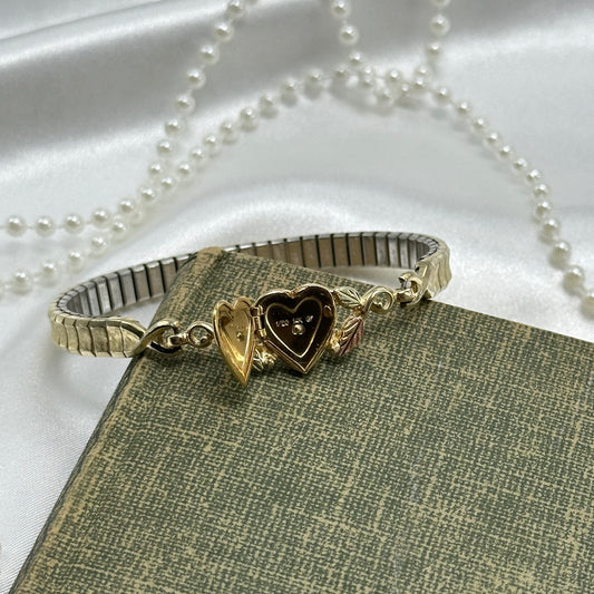 Black Floral Chain Bracelet with Vintage Silver 10k RGP Watch