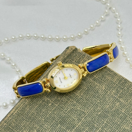 Gold and Blue Lapis Lazuli Gemstone Band Watch
