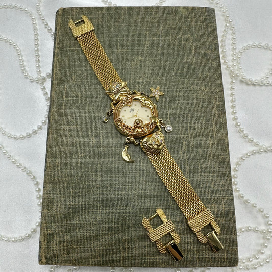 Rare Vintage Kirk's Folly "Angel Time" Gold Charm Watch