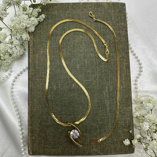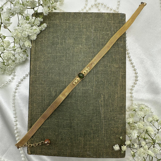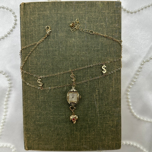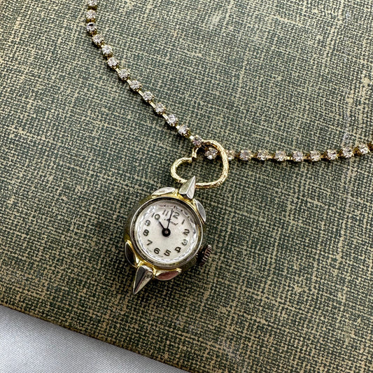 Gold Vintage Watch Rhinestone Choker with Heart Bail