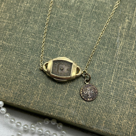 Gold Vintage Watch & Saint Benedict Medal Choker