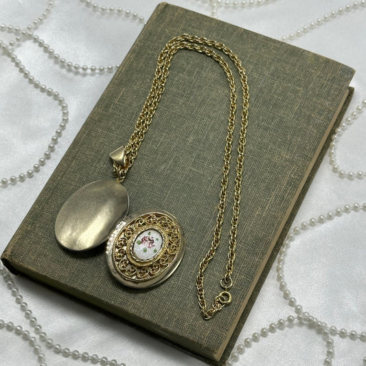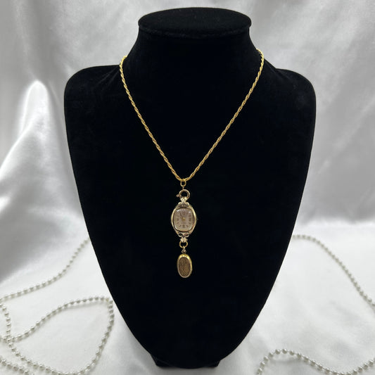 Vintage Watch Necklace with Oval Locket and Matching Bracelet