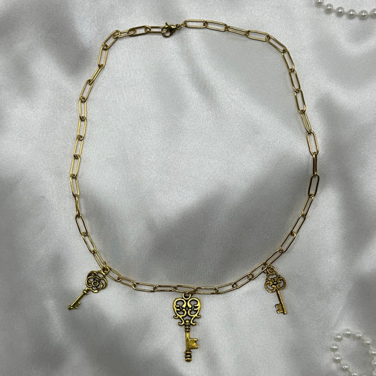 Gold Hearts and Butterfly Charm Necklace with Pearls