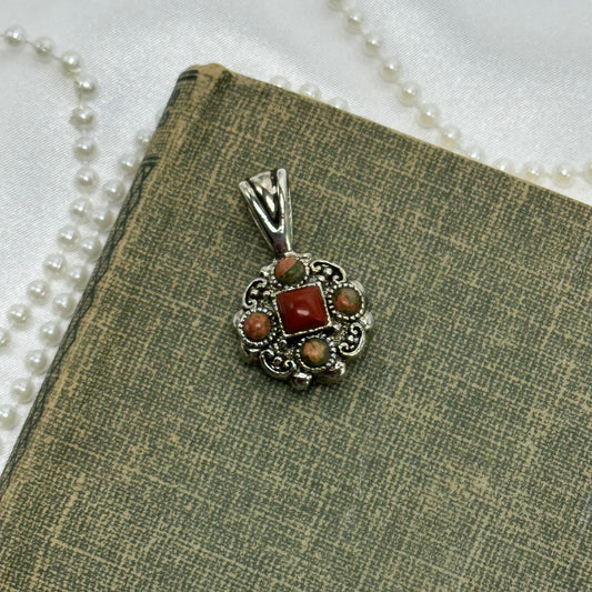 Vintage Silver and Green Pendant & Cross Pendant Bundle