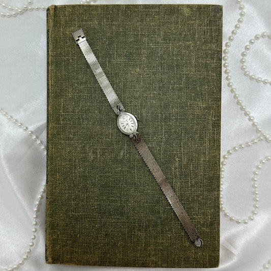 10k RGP Dainty Silver Wind-Up Hamilton Cocktail Watch with Diamond Dial
