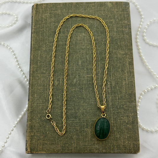 Gold Vintage Green Scarab Necklace