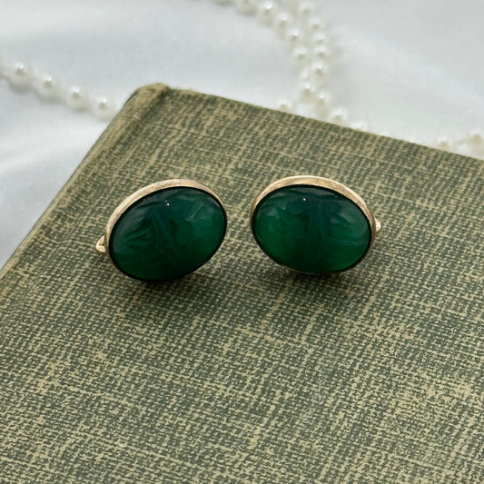 Vintage Gold Filled Green Scarab Screw Back Earrings