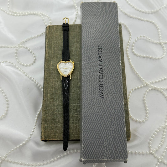 Vintage Avon Gold Heart Watch with Mother of Pearl Dial