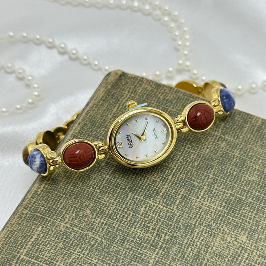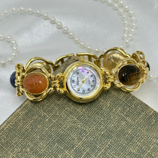 Vintage Gold Scarab Watch with Mother of Pearl Dial