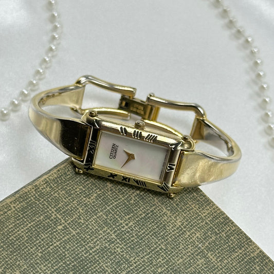 Gold Cuff Citizen Watch with Mother of Pearl Dial