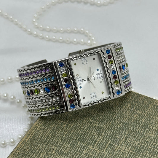Silver Diamanté Armitron Watch with Purple Butterflies and Flower Dial