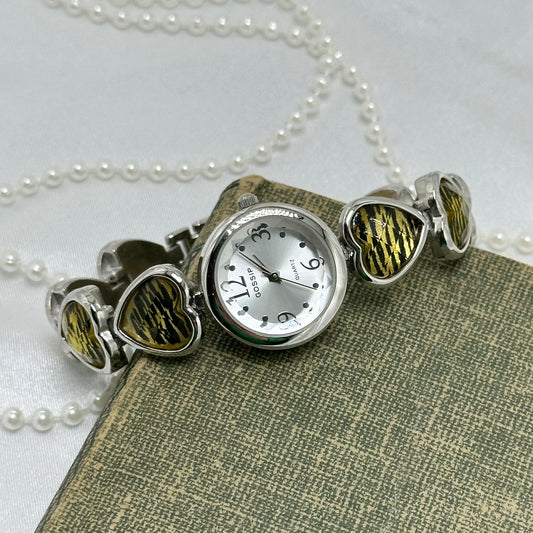 Silver Round Dial Watch with Tiger Heart Bracelet Band