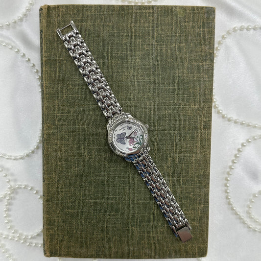 Silver Diamanté Armitron Watch with Purple Butterflies and Flower Dial
