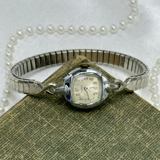 Diamanté Silver Vintage Wind-Up Timex Watch