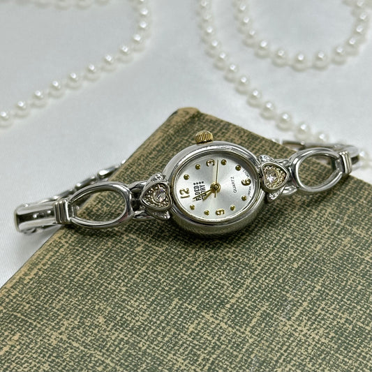 Dainty Two-Tone Oval Dial Heart Watch