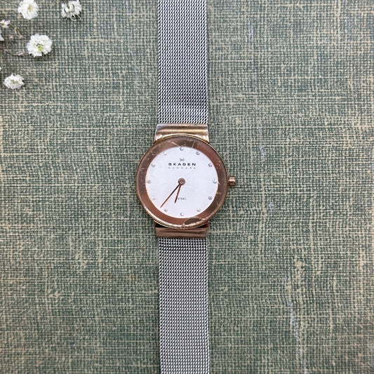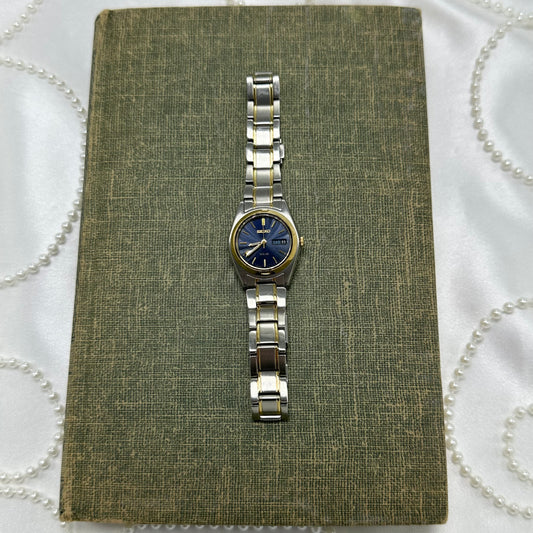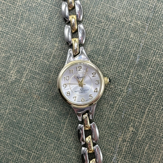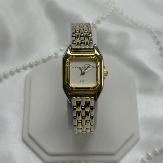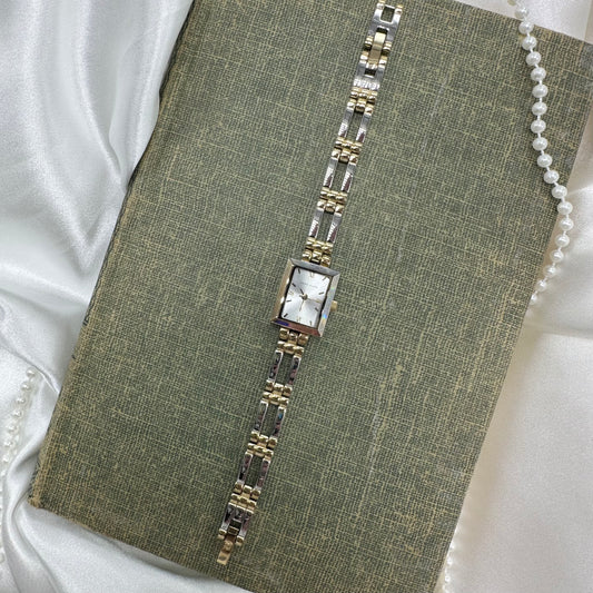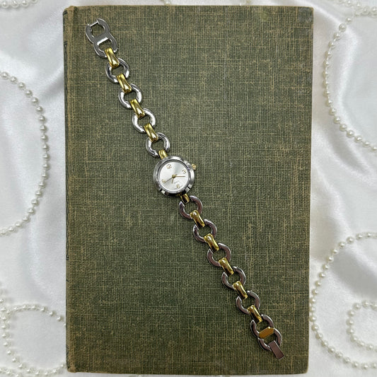 Two-Tone Round Dial Watch with Mother of Pearl Dial