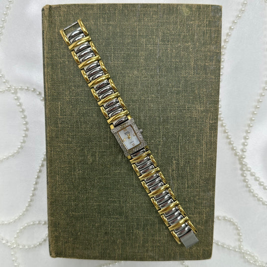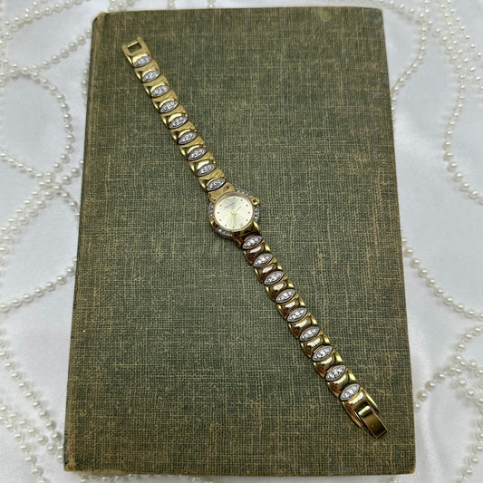 Vintage Two-Tone Diamanté Watch with Roman Numeral Markers