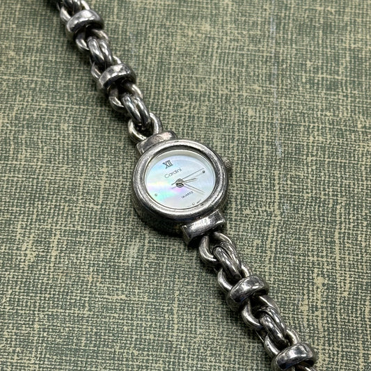 Sterling Silver Chain Bracelet Watch with Mother of Pearl Dial