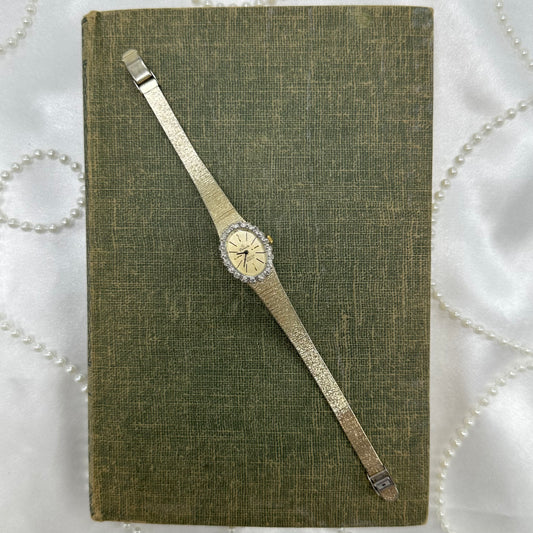 Gold Diamanté Lucien Piccard Watch with Blue Jewel Crown
