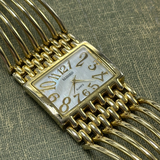 Chunky Gold Cuff Watch with Mother of Pearl Dial