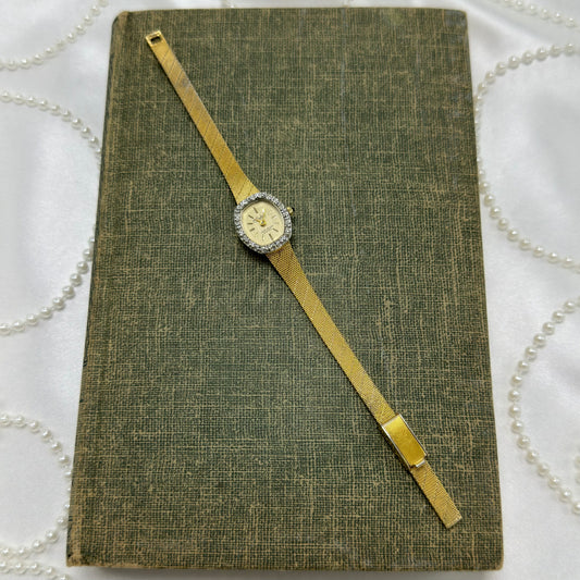 Vintage 1970's Jean Cardot Wind Up Gold Watch with Opal Saturn Charm