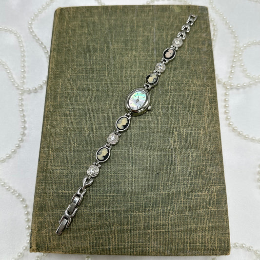 Silver Cameo Watch with Mother of Pearl Dial
