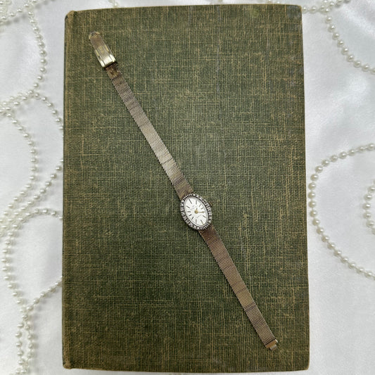 Dainty Vintage Gold Timex Wind-Up Watch with Pearl Charm