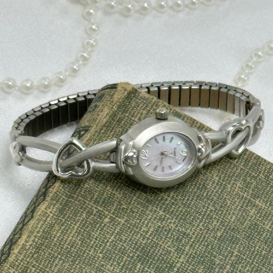 Silver Watch with Heart Band and Mother of Pearl Dial