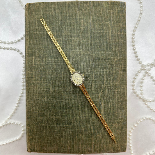 Dainty Vintage Gold Diamanté Deauville Diamond Watch