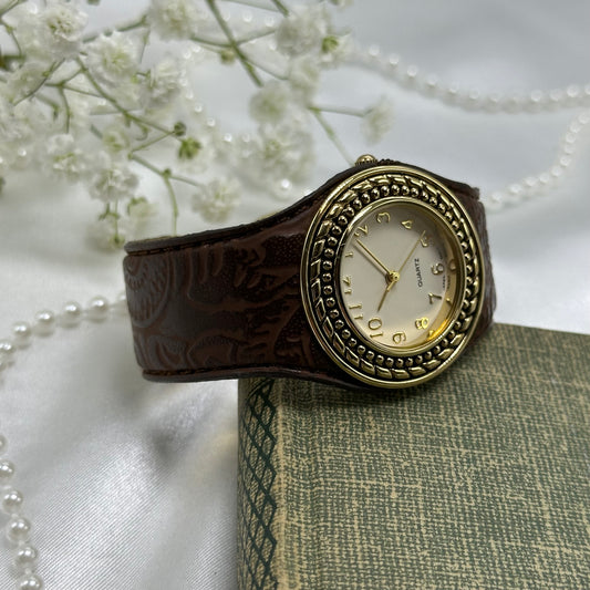 Gold and Brown Avon Cuff Watch