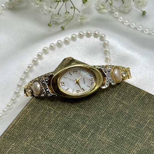 Diamanté and Pearl Watch with Mother of Pearl Dial