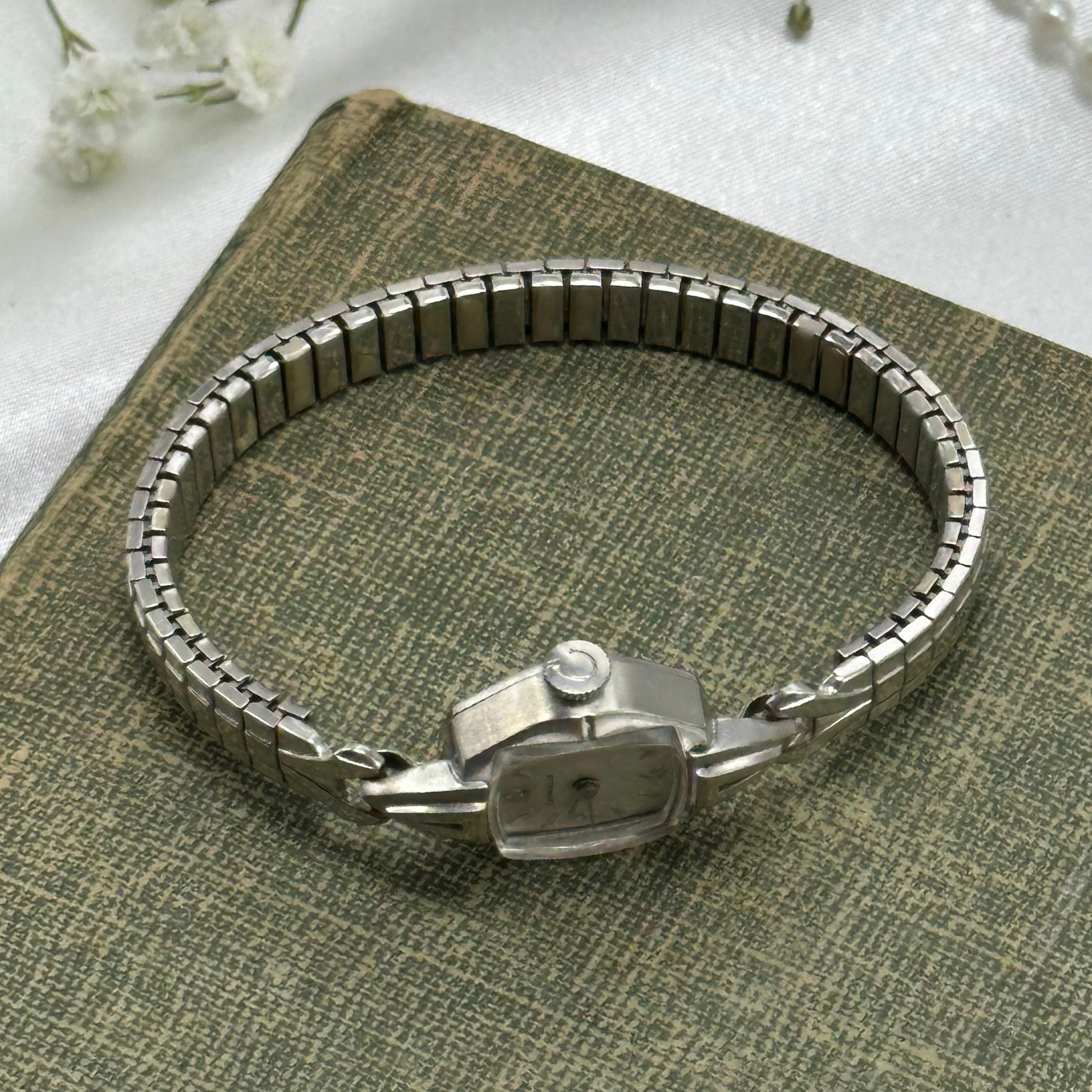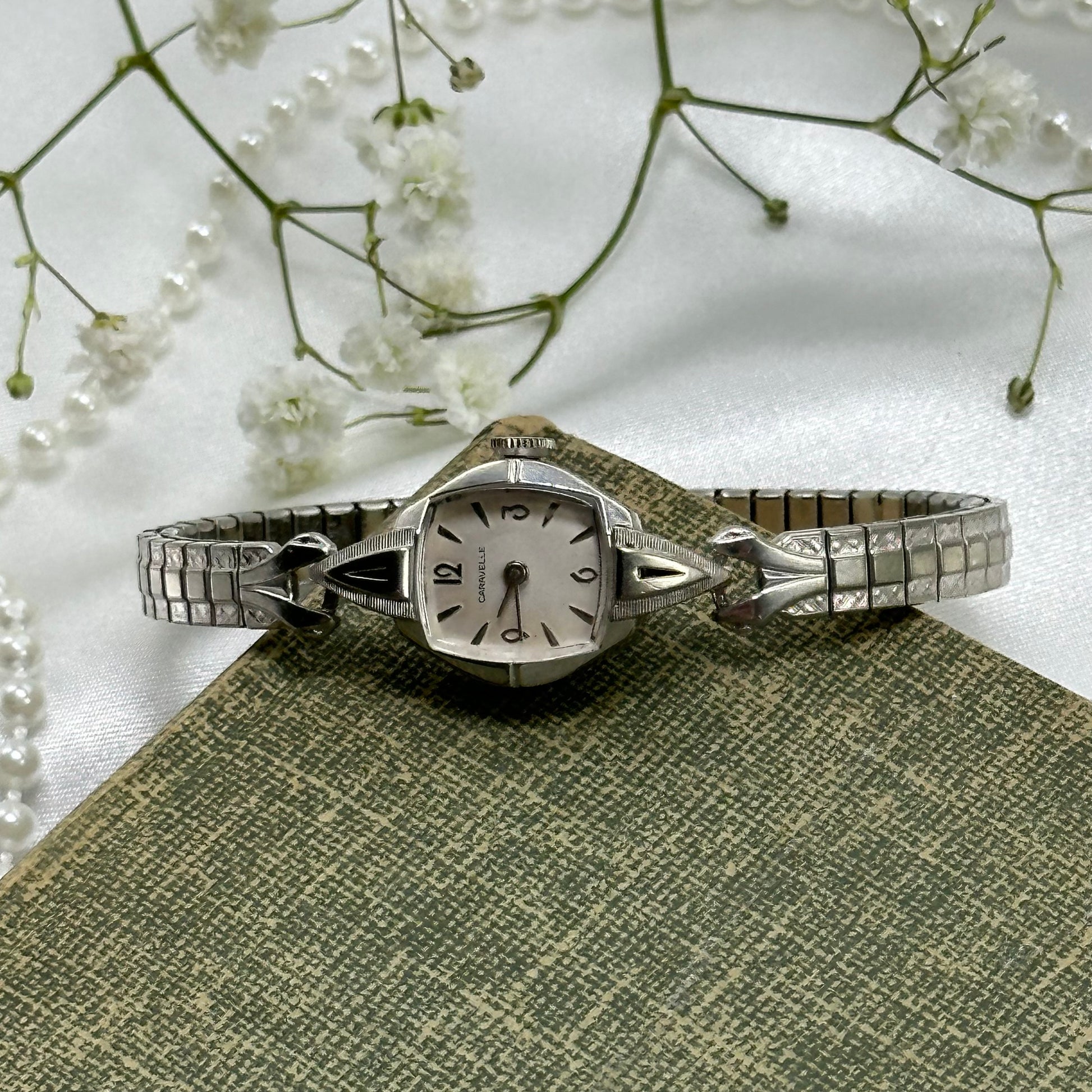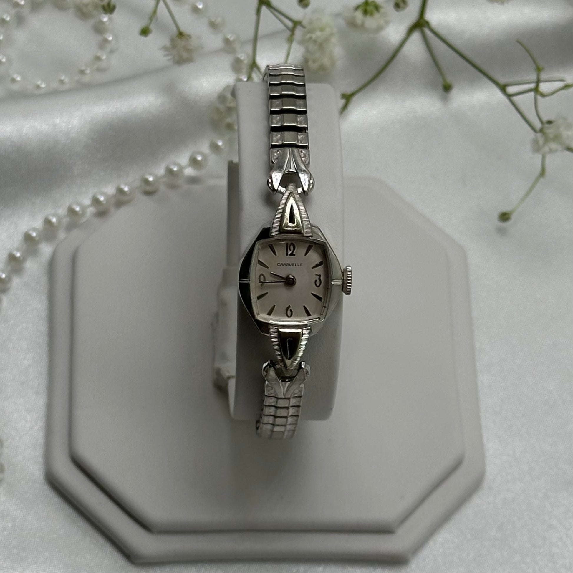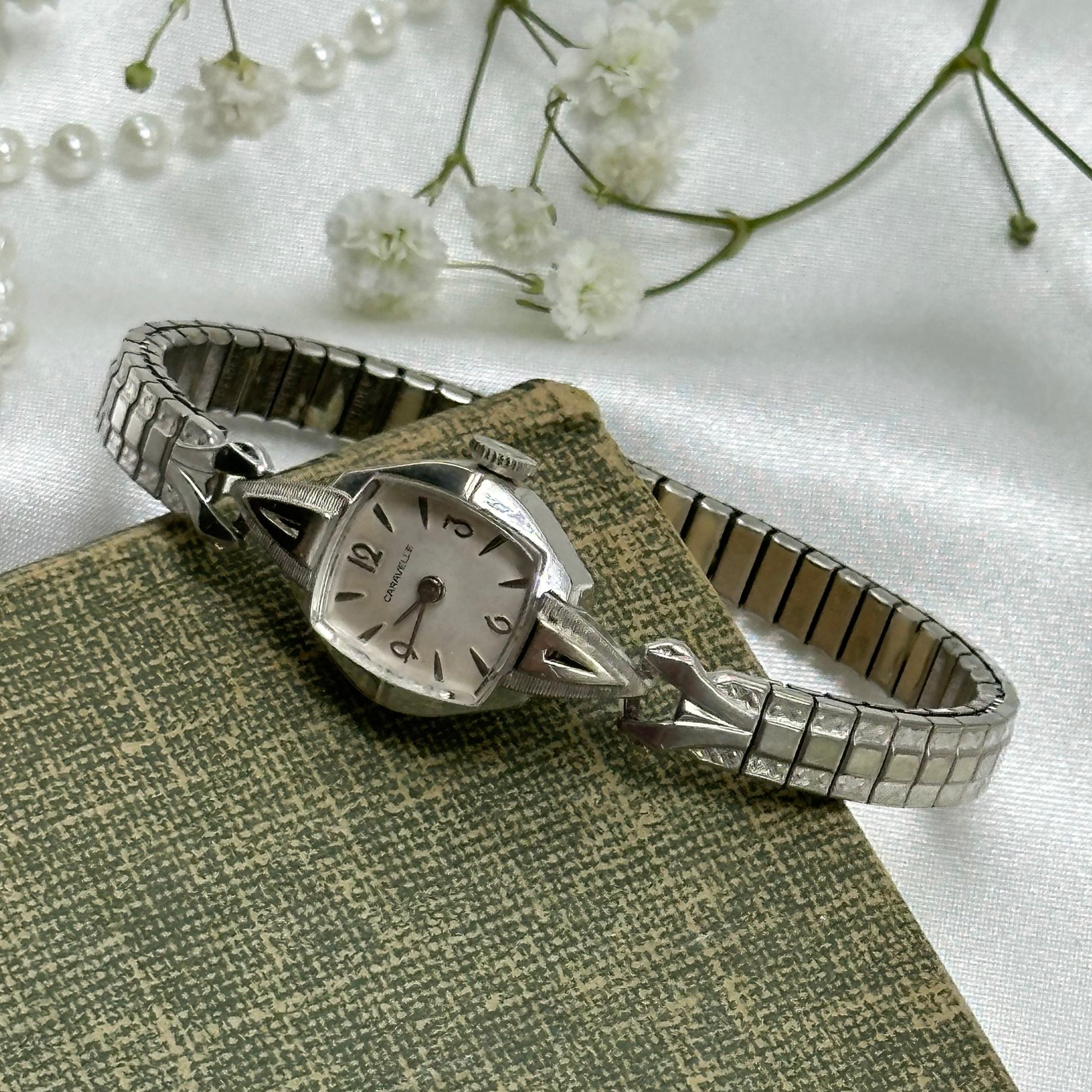 Vintage 1960's Caravelle by Bulova manual winding watch with stretchable band. Watch comes with original C crown.