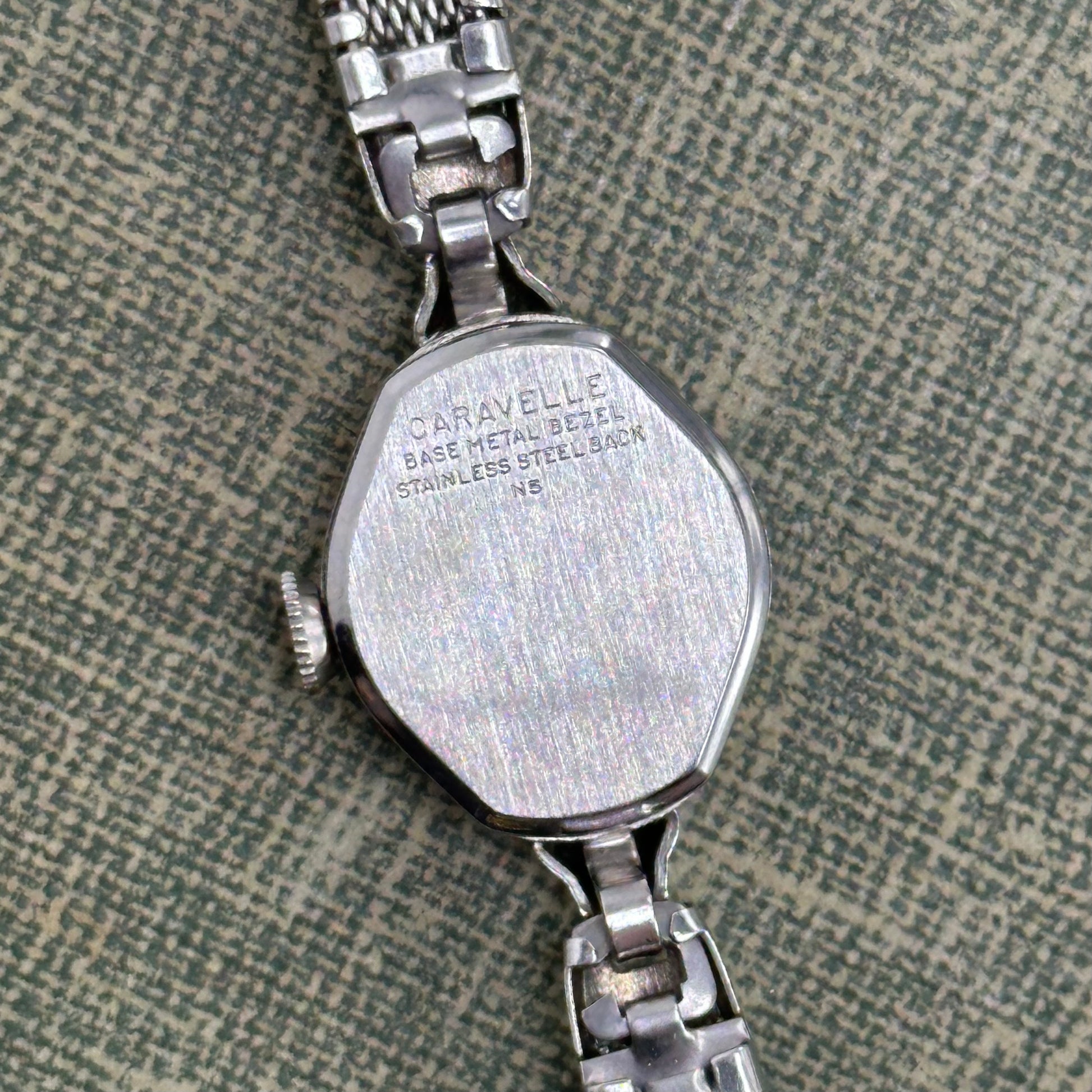 1975 Silver Wind-Up Caravelle Cocktail Watch with Detailed Band