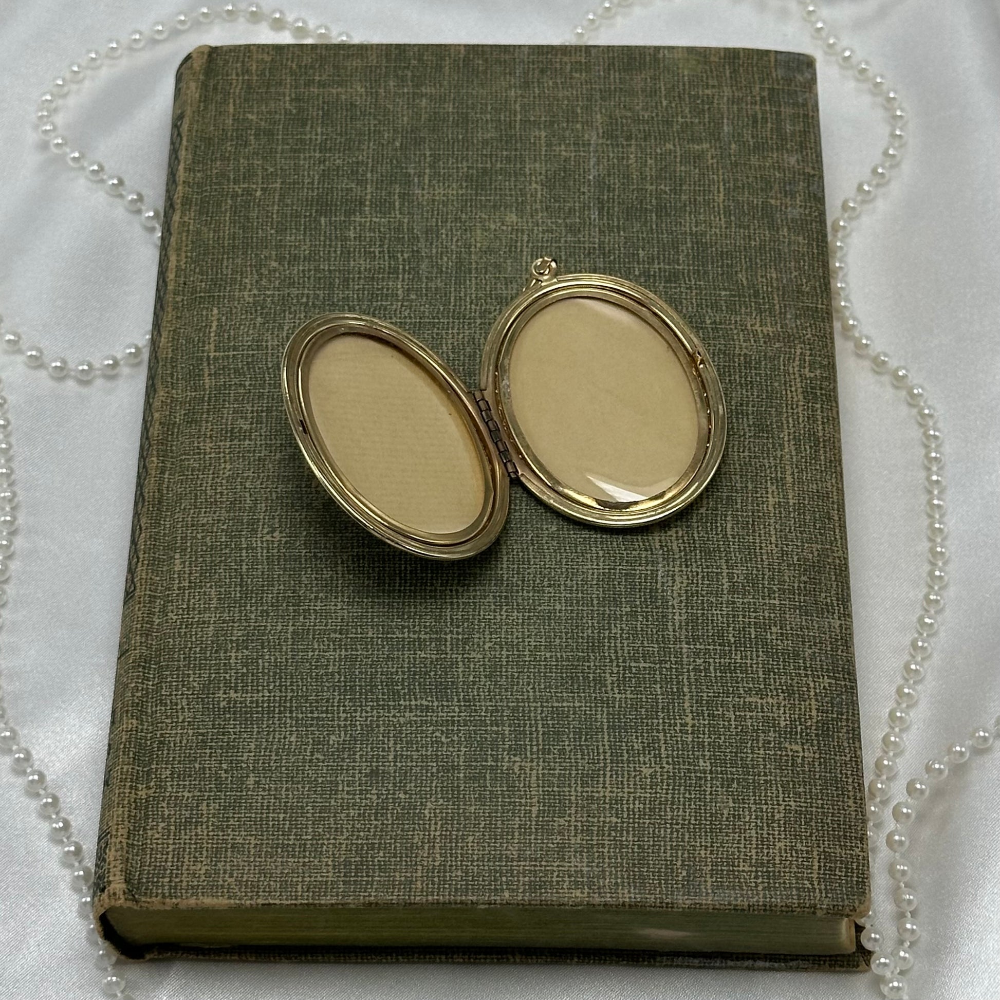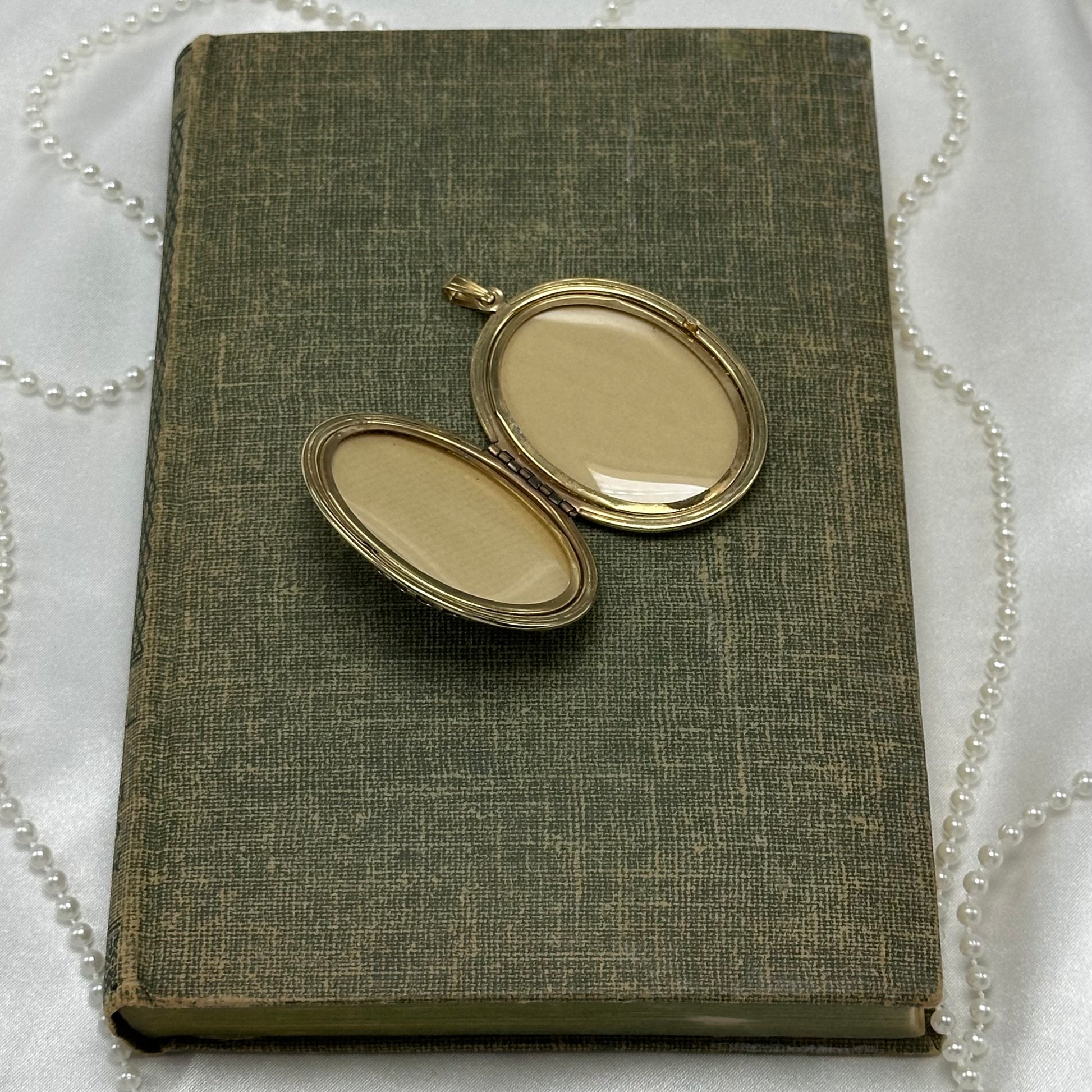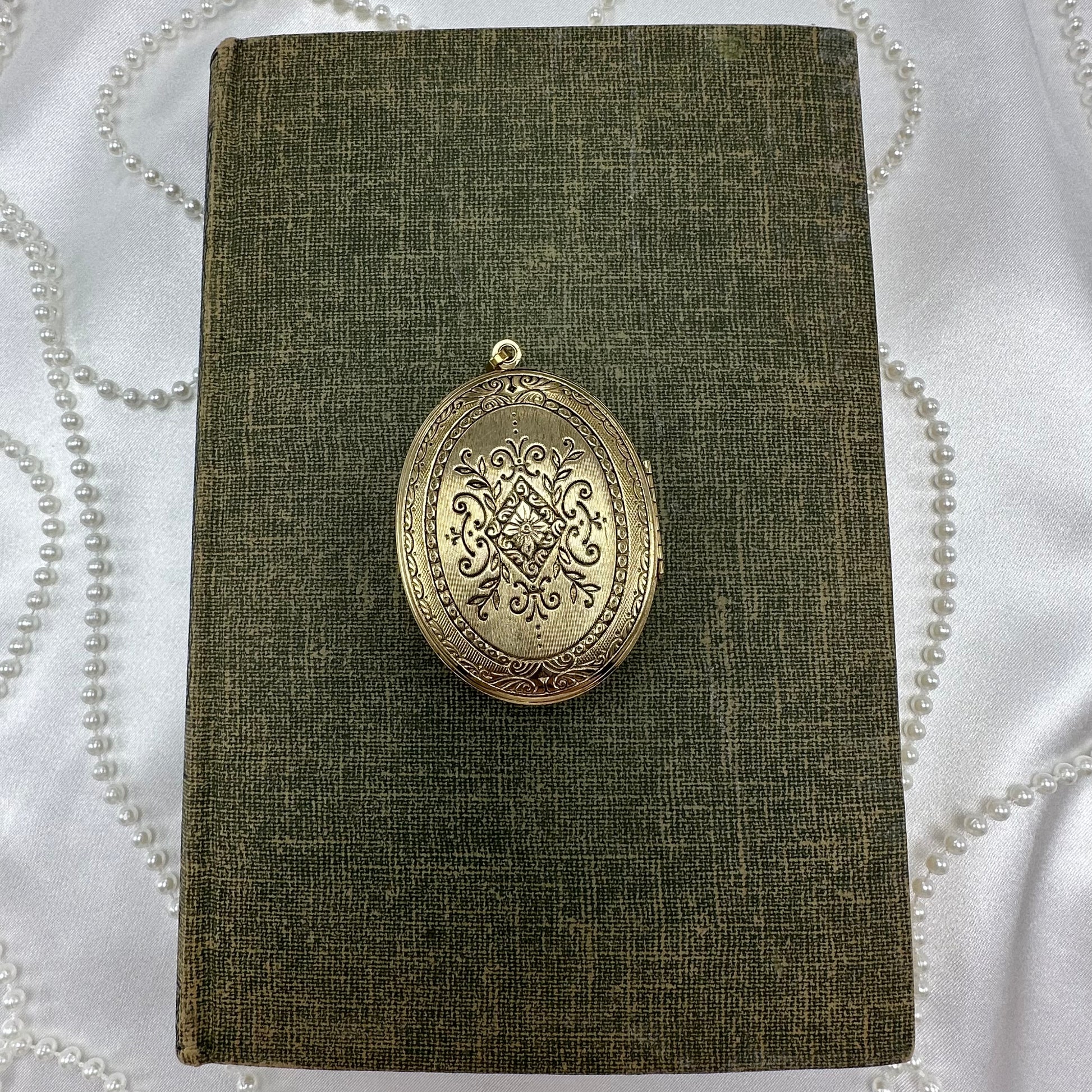 Vintage filigree oval hanging photo locket with gorgeous multicolor stone.