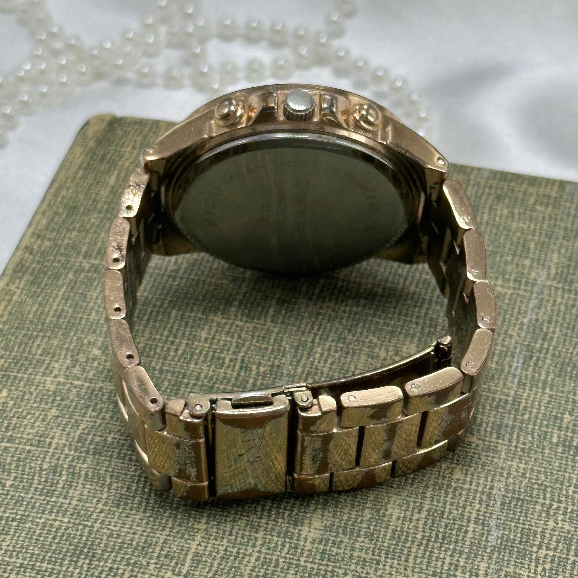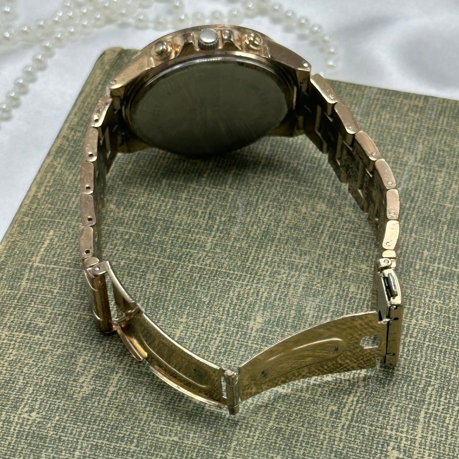 Rose gold tone diamanté and glitter dial Kim Rogers watch with double locking fold over clasp and 3 decor dials.