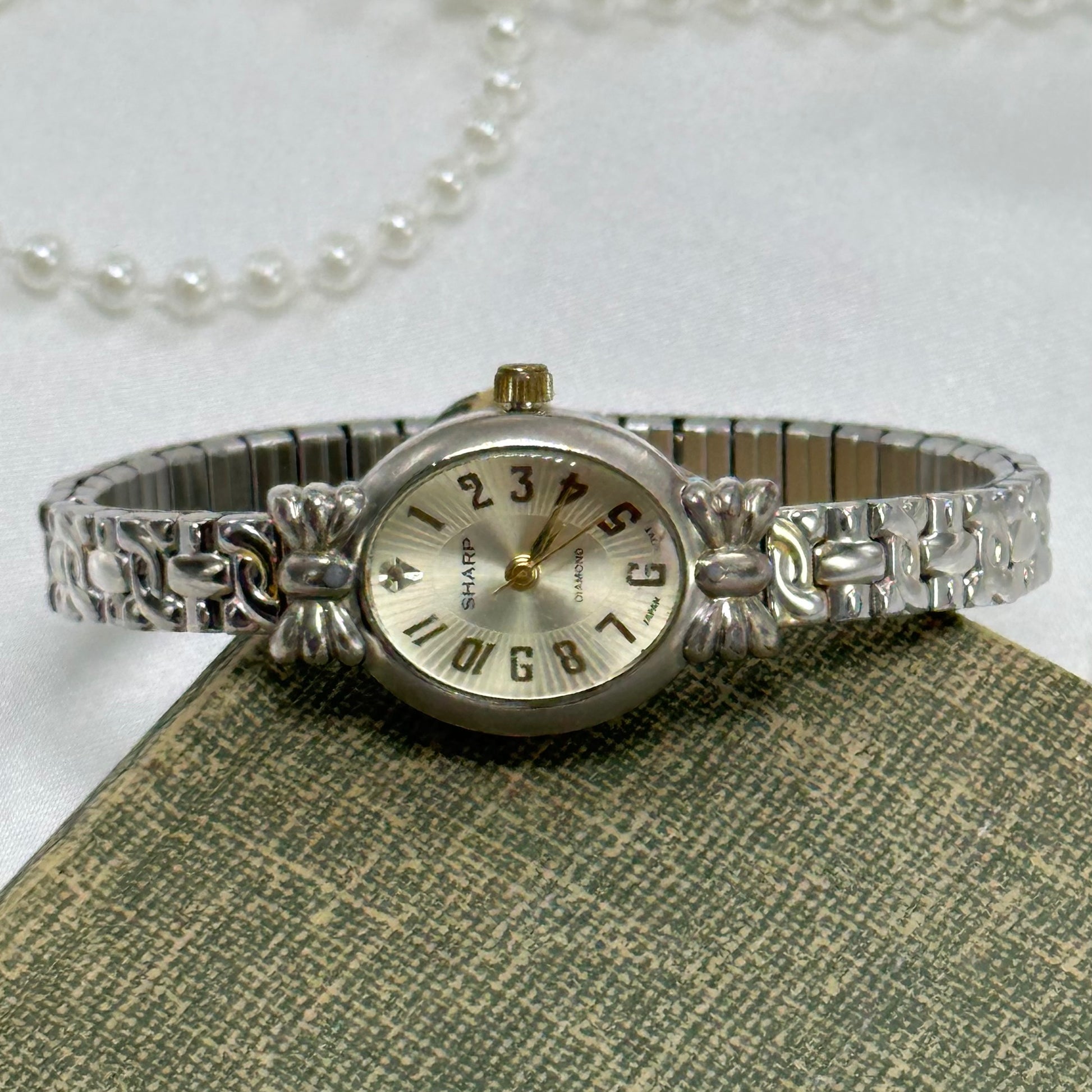 Vintage two-tone Sharp Diamond watch with stretchable band.