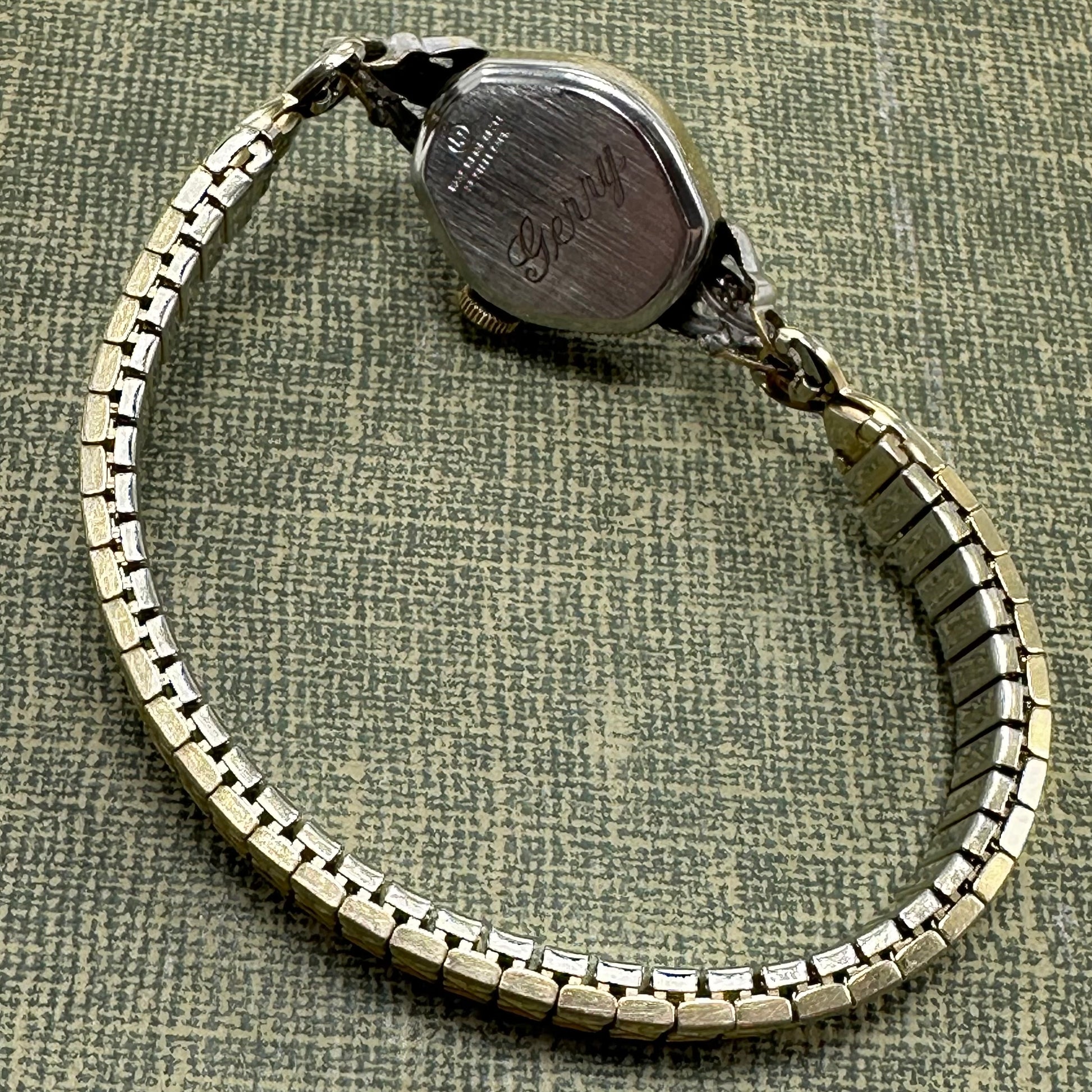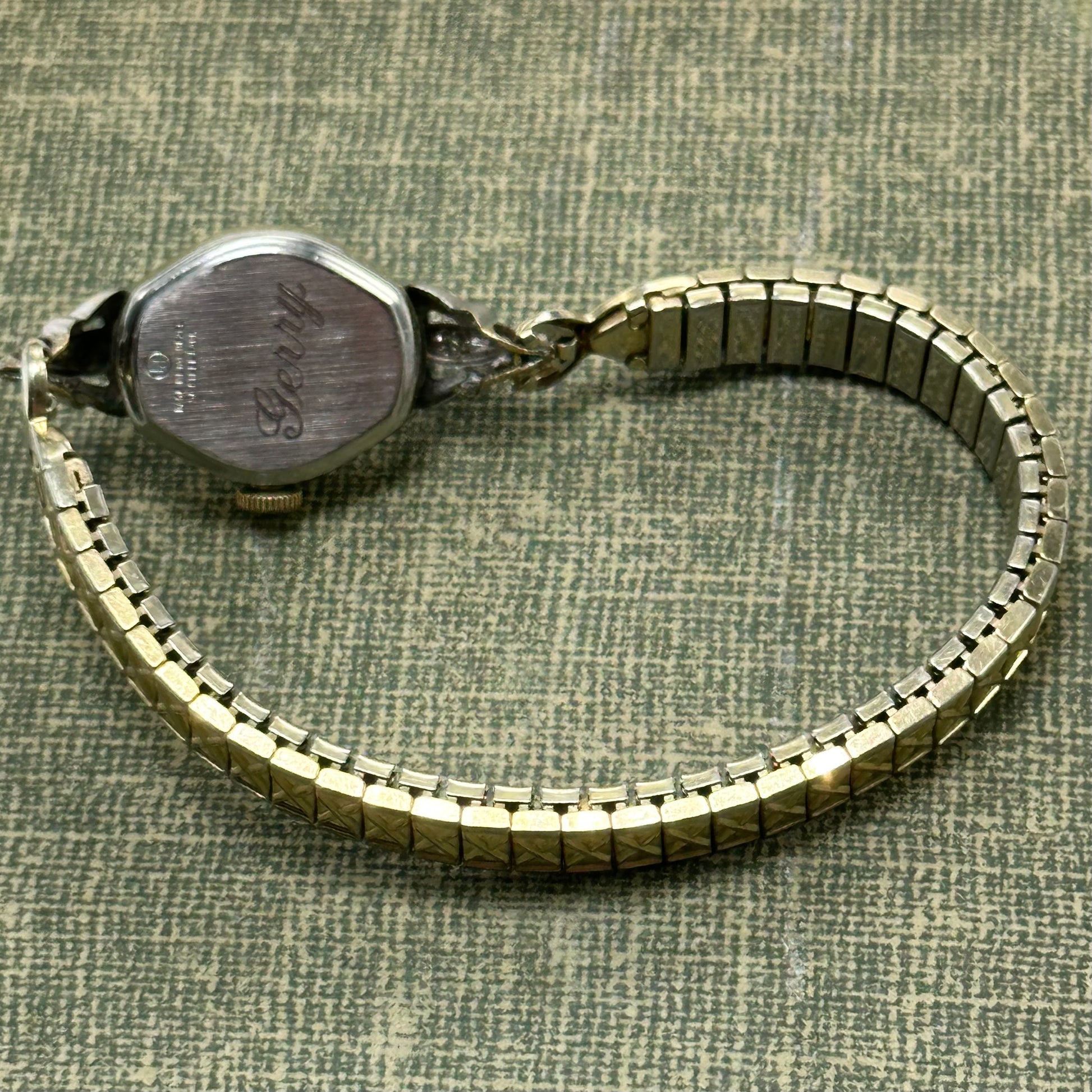 Vintage gold tone diamanté manual winding Starlite watch from the 1960's. Watch is missing minute hand and crystal. Back is engraved with "Gerry".
