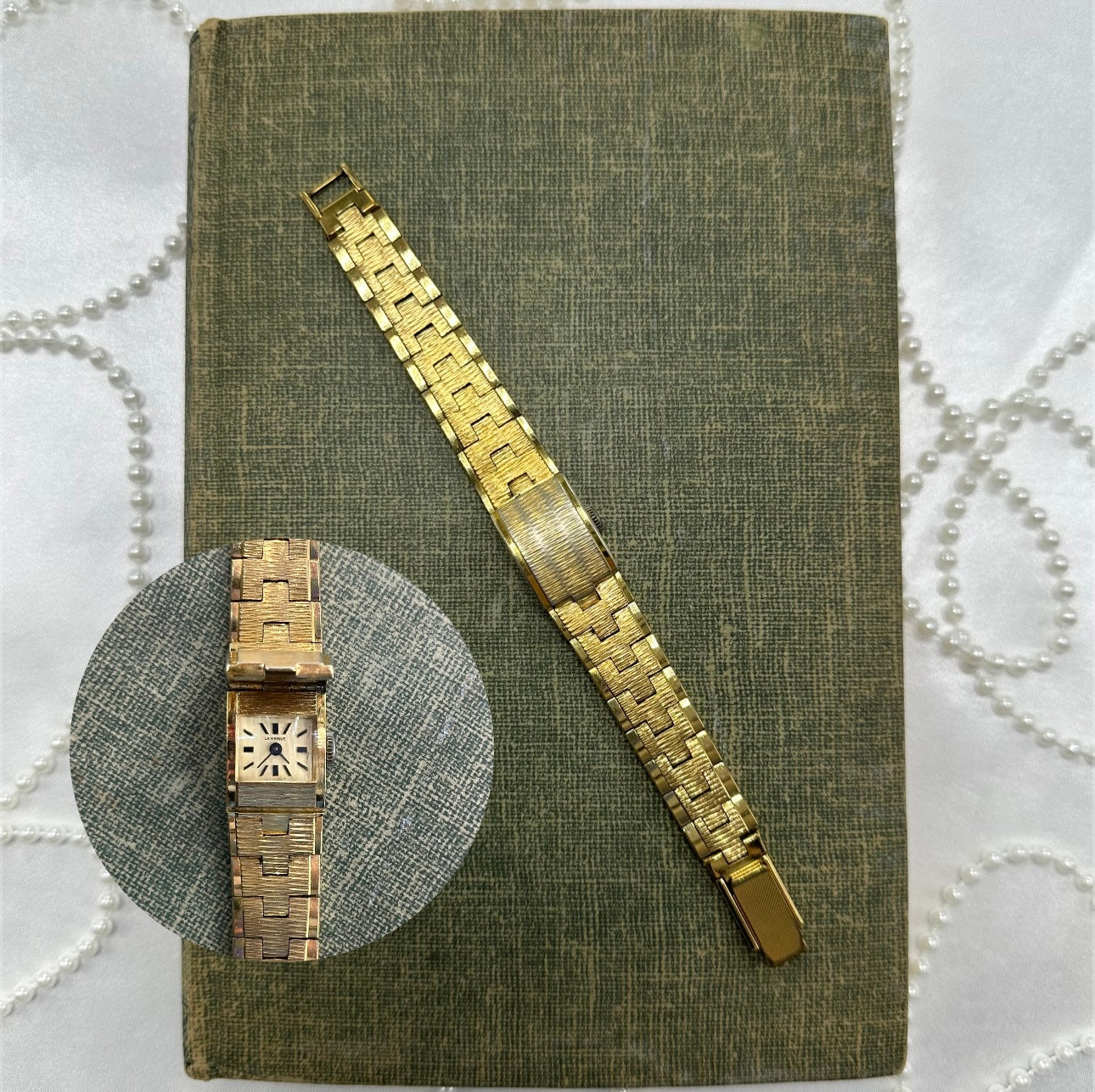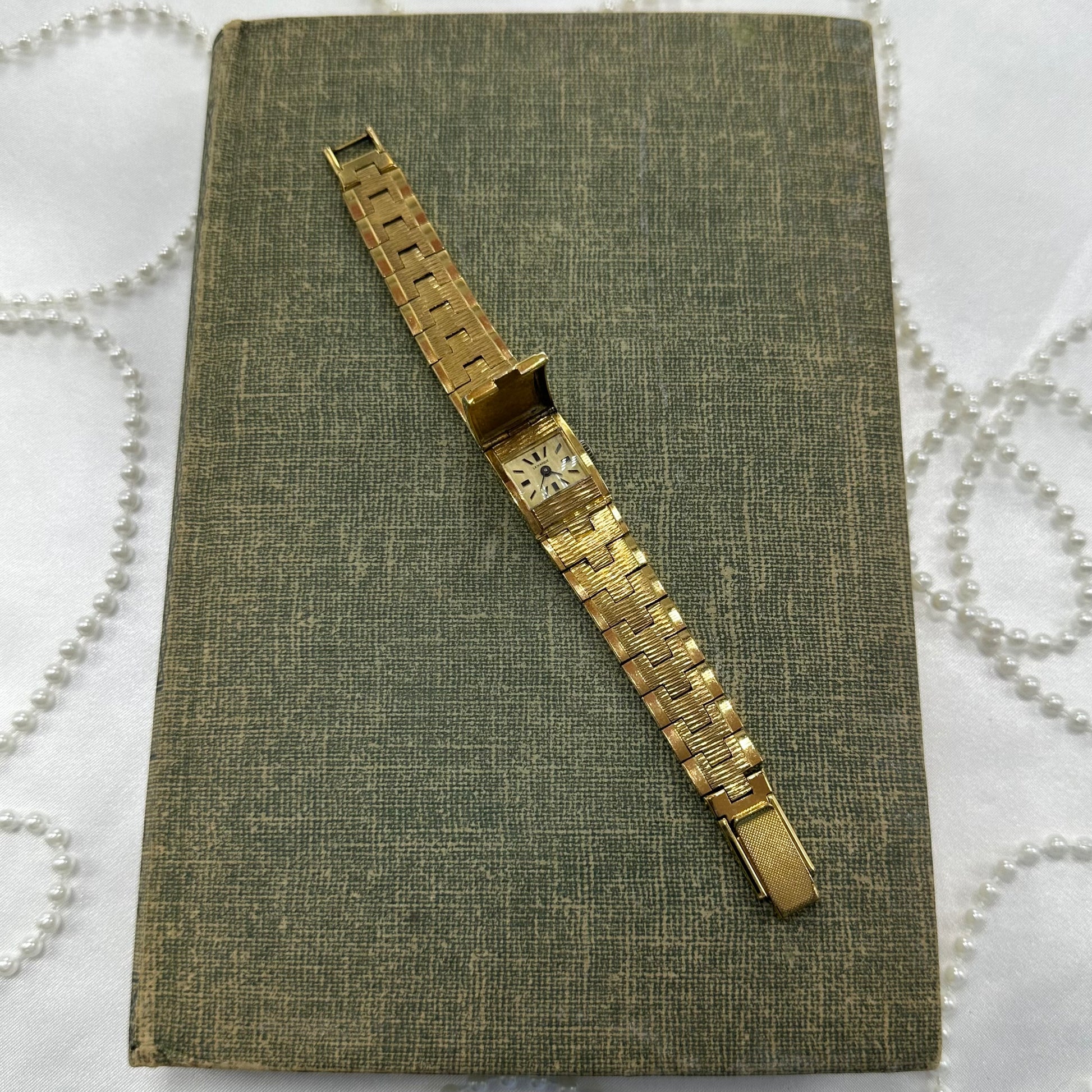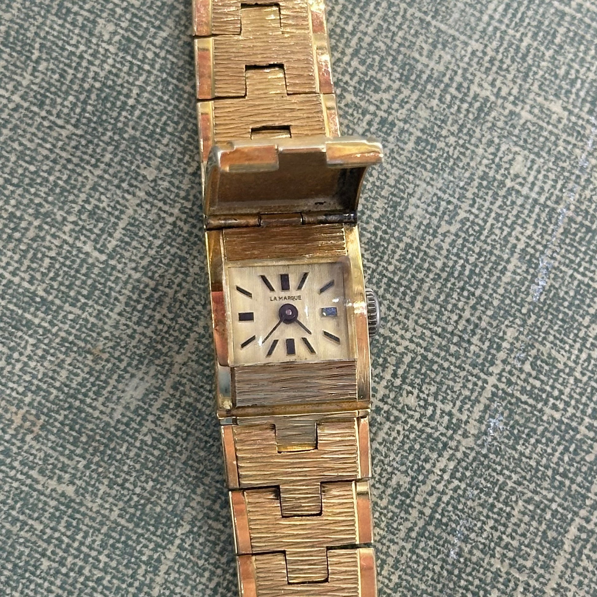 Vintage gold tone manual winding La Marque watch with peek a boo dial.